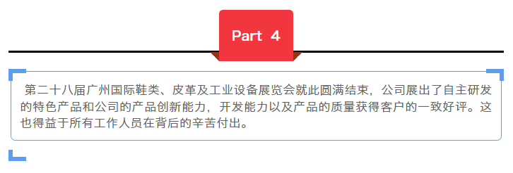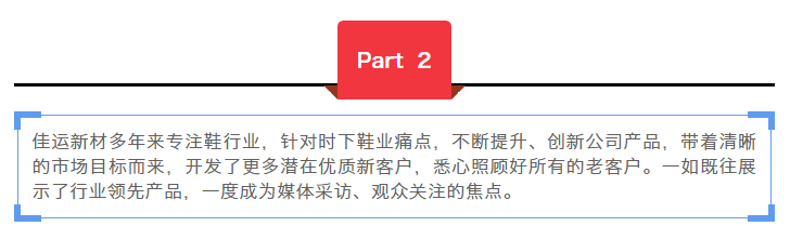 第二十八屆廣州國際鞋類、皮革及工業設備展覽會已圓滿落下帷幕,在這3天的開展期,不管是展商還是前來參觀的觀眾都收獲滿滿。展覽上佳運新材完美的呈現了公司形象和產品實力,讓人印象深刻。